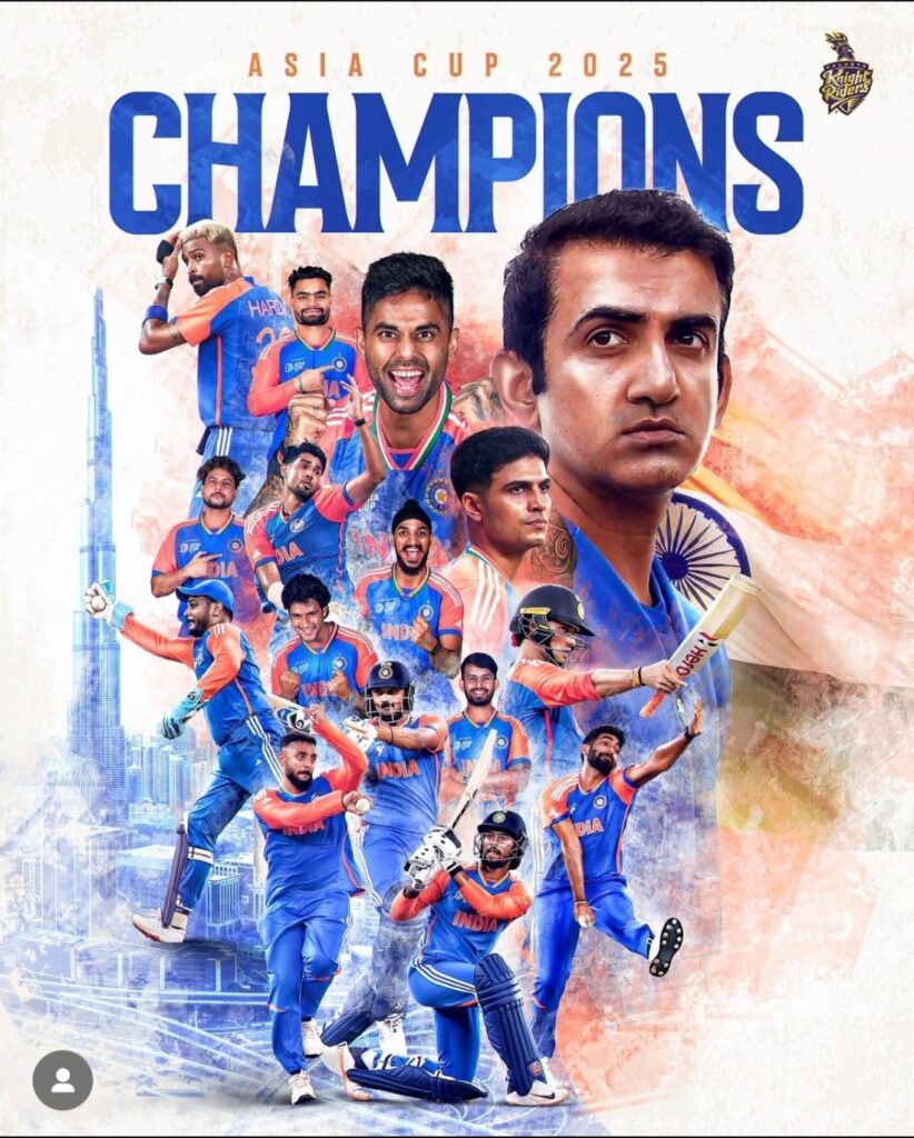 ದುಬೈನ ಅಂತಾರಾಷ್ಟ್ರೀಯ ಕ್ರೀಡಾಂಗಣದಲ್ಲಿ ಭಾನುವಾರ ಸಂಜೆ ನಡೆದ ಏಪ್ಯಾ ಕಪ್ ಫೈನಲ್ ಪಂದ್ಯದಲ್ಲಿ ಟೀಮ್ ಇಂಡಿಯಾ ತನ್ನ ಸಾಂಪ್ರದಾಯಿಕ ಎದುರಾಳಿ ಪಾಕಿಸ್ತಾನವನ್ನು ರೋಚಕವಾಗಿ ಸೋಲಿಸಿದ್ದಲ್ಲದೇ, 9ನೇ ಬಾರಿಗೆ ಚಾಂಪಿಯನ್ ಪಟ್ಟವನ್ನು ಅಲಂಕರಿಸಿಕೊಂಡಿದೆ.