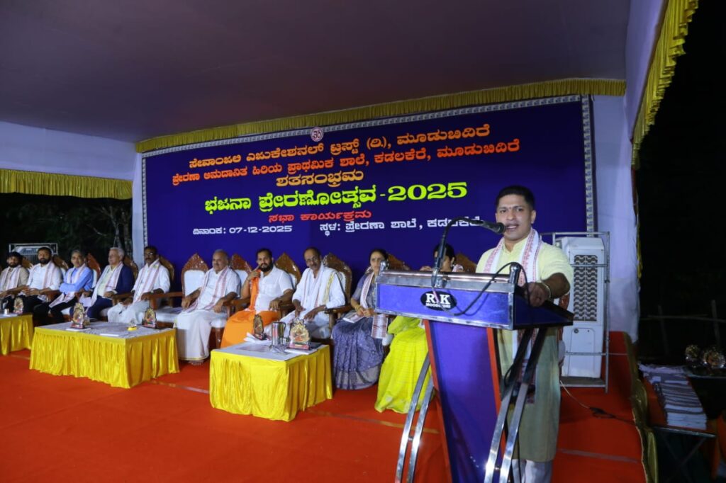 ಅವರು ಮೂಡುಬಿದಿರೆಯ ಸೇವಾಂಜಲಿ ಎಜ್ಯುಕೇಶನಲ್ ಟ್ರಸ್ಟ್ ನ ಅಂಗಸಂಸ್ಥೆ ಕಡಲಕೆರೆ ಪ್ರೇರಣಾ ಅನುದಾನಿತ ಹಿರಿಯ ಪ್ರಾಥಮಿಕ ಶಾಲೆಯ ಶತಸಂಭ್ರಮದ ಪ್ರಯುಕ್ತ ರವಿವಾರ ರಾತ್ರಿ ನಡೆದಭಜನಾ ಪ್ರೇರಣೋತ್ಸವ-2015ರ ಸಭಾ ಕಾರ್ಯಕ್ರಮದಲ್ಲಿ ಧಾರ್ಮಿಕ ಉಪನ್ಯಾಸ ನೀಡಿದರು. ಮುಖ್ಯಅತಿಥಿ, ದುಬೈ ಯುಎಇ ಮೊಗವೀರ ಸಂಘದ ಆಧ್ಯಕ್ಷ ಸಿಎ ಲೋಕೇಶ್ ಪುತ್ರನ್ ಮಾತನಾಡಿ, ಕನ್ನಡ ಶಾಲೆ ಎಂಬ ಕೀಳರಿಮೆ ಬೇಡ, ಇಂಥ ಶಾಲೆಯಲ್ಲಿಯೇ ಕಲಿತು ಸಿಎ ಪೂರೈಸಿರುವೆ; ಭಗವದ್ಗೀತೆಯೇ ತನ್ನ ಸಾಧನೆಗೆ ಪ್ರೇರಣೆ ಎಂದರು.