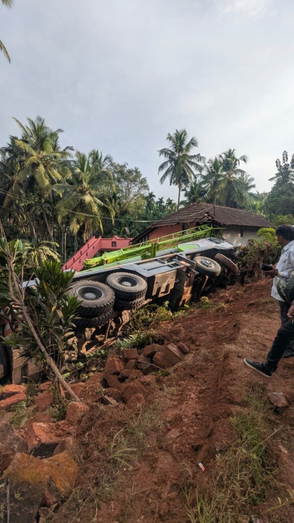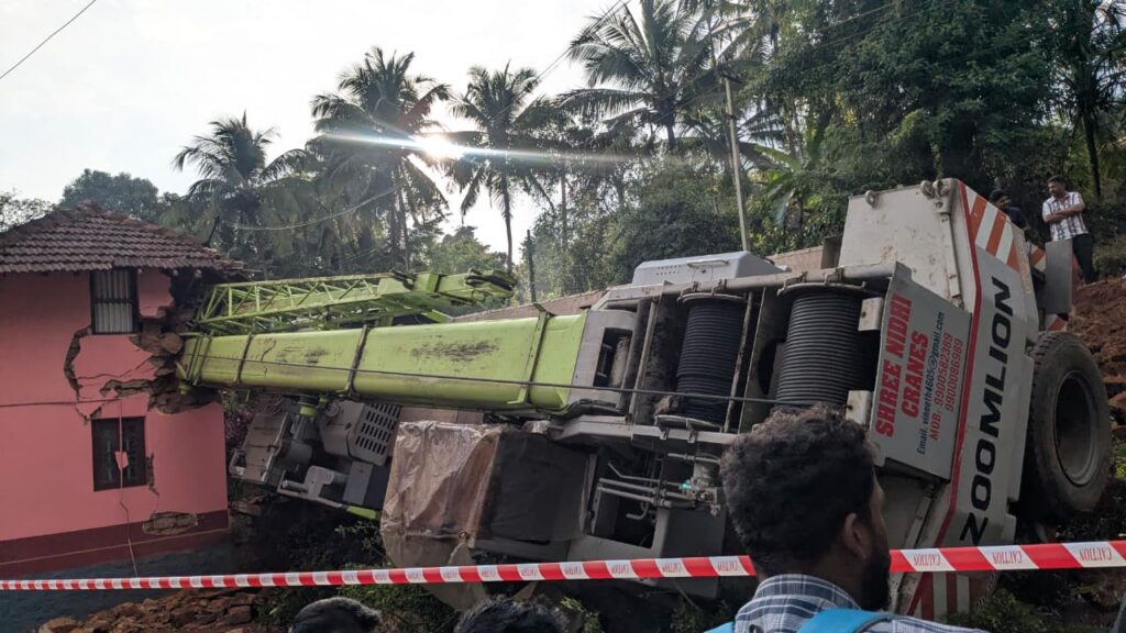 ಕಲ್ಲಮುಂಡ್ಕೂರಿನಲ್ಲಿ ಮನೆ ಮೇಲೆ ಬಿದ್ದ ಕ್ರೈನ್: ಮನೆ ಮಂದಿ ಪವಾಡ ಸದೃಶ್ಯವಾಗಿ ಪಾರು