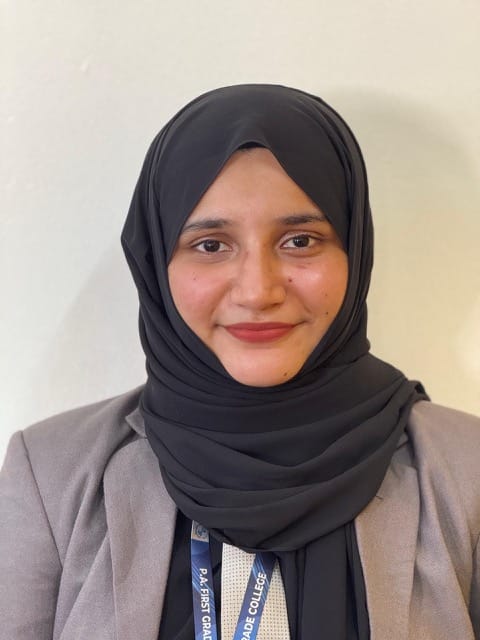 ಇವರು ಒಟ್ಟು 4550 ಅಂಕಗಳಲ್ಲಿ 4220 ಅಂಕಗಳನ್ನು ಪಡೆದು ಶೇಕಡ 92.75 ಸಾಧನೆ ಮಾಡಿದ್ದು, 9.56 ಸಿಜಿಪಿಎ (CGPA) ಗಳಿಸುವ ಮೂಲಕ ತಮ್ಮ ಉತ್ತಮ ಶೈಕ್ಷಣಿಕ ಮಟ್ಟದಲ್ಲಿ ಮೇಲುಗೈ ಸಾಧಿಸಿದ್ದಾರೆ.ಕುಮಾರಿ ಆಯಿಷತ್ ಲುತ್ಫಾ ನಜಾ ಕೆ.ಎ. ಅವರ ಈ ವಿಶಿಷ್ಟ ಸಾಧನೆಗಾಗಿ ಪಿ.ಎ. ಪ್ರಥಮ ದರ್ಜೆ ಕಾಲೇಜಿನ ಆಡಳಿತ ಮಂಡಳಿ, ಪ್ರಾಂಶುಪಾಲರು ಹಾಗೂ ಸಿಬ್ಬಂದಿ ವರ್ಗ ಹೃತ್ಪೂರ್ವಕ ಅಭಿನಂದನೆಗಳನ್ನು ಸಲ್ಲಿಸುತ್ತೇವೆ . ಇವರ ಈ ಅತ್ಯುತ್ತಮ ಸಾಧನೆಯಿಂದ ಕಾಲೇಜಿಗೆ ಕೀರ್ತಿಯನ್ನು ತಂದುಕೊಟ್ಟಿದ್ದಾರೆ.