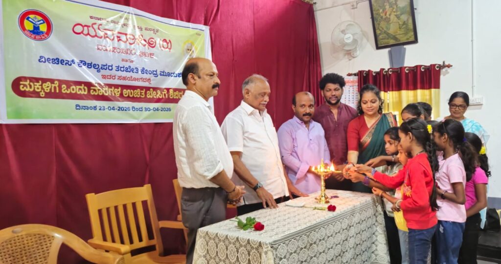 ಮೂಡಬಿದಿರೆ: ಯುವವಾಹಿನಿ (ರಿ.) ಮೂಡುಬಿದಿರೆ ಘಟಕ ಹಾಗೂ ವೀಚೀಸ್ ಕೌಶಲ್ಯಪರ ತರಬೇತಿ ಕೇಂದ್ರ ಮೂಡುಬಿದಿರೆ ಇವರ ಸಹಯೋಗದಲ್ಲಿ ಮಕ್ಕಳಿಗೆ ಒಂದು ವಾರಗಳ ಉಚಿತ ಬೇಸಿಗೆ ಶಿಬಿರದ ಉದ್ಘಾಟನಾ ಸಮಾರಂಭವು ಮೂಡುಬಿದಿರೆಯ ಸಮಾಜ ಮಂದಿರದ ಸ್ವರ್ಣ ಮಂದಿರದಲ್ಲಿ ಆರಂಭಗೊಂಡಿತು.