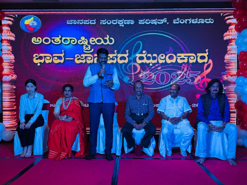 ಸಮಾಜ ಸೇವಕ ಟಿ.ವಿ ಬಾಬು ಅಂತರಾಷ್ಟ್ರೀಯ ಭಾವ- ಜಾನಪದ ಝೇಂಕಾರ ಕಾರ್ಯಕ್ರಮಕ್ಕೆ ಚಾಲನೆ ನೀಡಿದರು.ಬಳಿಕ ಮಾತನಾಡಿದ ಅವರು ಕನ್ನಡಾಂಬೆಯ ಸೇವೆ ಮಾಡುವುದು ನಮ್ಮೆಲ್ಲರ ಕರ್ತವ್ಯವಾಗಿದೆ. ನಮ್ಮ ಸಂಸ್ಕೃತಿಯನ್ನು ಜಗತ್ತಿನಾದ್ಯಂತ ಪರಿಚಯಿಸುವ ಅಗತ್ಯವಿದೆ ಎಂದು‌ ಹೇಳಿದರು.ಕೋಲಾರ‌ದ ನಿವೃತ್ತ ಜಿಲ್ಲಾಧಿಕಾರಿ ಡಾ. ವಿಶ್ವನಾಥ್ ಕಾರ್ಯಕ್ರಮ ಅಧ್ಯಕ್ಷತೆ ವಹಿಸಿದರು.ಜಾನಪದ ಸಂರಕ್ಷಣಾ ಪರಿಷತ್(ರಿ) ಅಧ್ಯಕ್ಷ ಗೊನಾಸ್ವಾಮಿ ಸಂಸ್ಥೆಯ ಕುರಿತು ಪ್ರಾಸ್ತಾವಿಕ ಮಾತುಗಳನ್ನಾಡಿದರು.