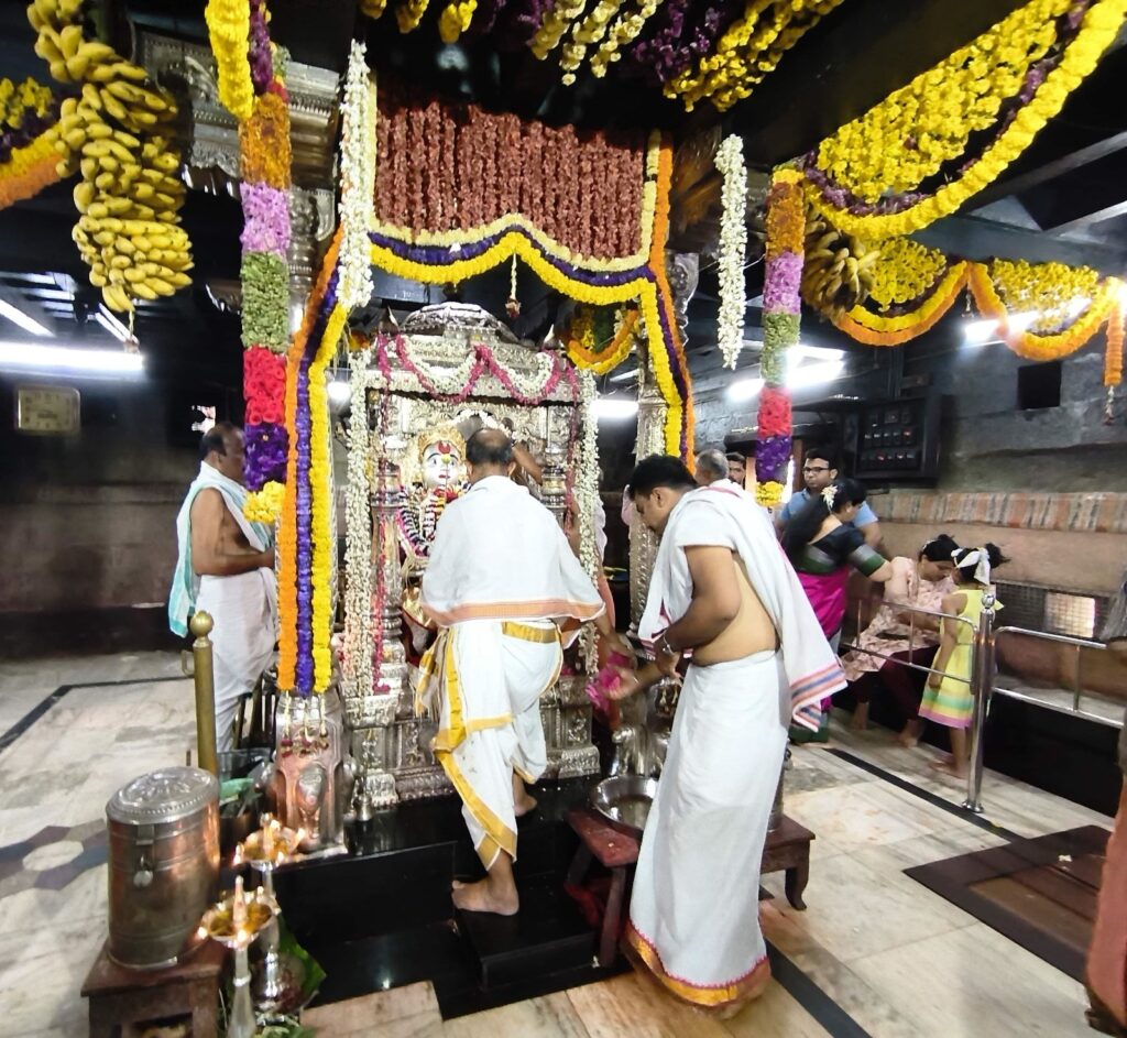 ಕಾಪು ಶ್ರೀ ಹಳೇ ಮಾರಿಯಮ್ಮ ದೇವಸ್ಥಾನದಲ್ಲಿನ ಶ್ರೀ ದೇವಿ ಸನ್ನಿಧಿಯಲ್ಲಿ ಧರ್ಮಪಾಲ ದೇವಾಡಿಗ ಪರಿವಾರ ಪೂರೈಸಿದ ಹರಕೆ ಮಾರಿಪೂಜೆ