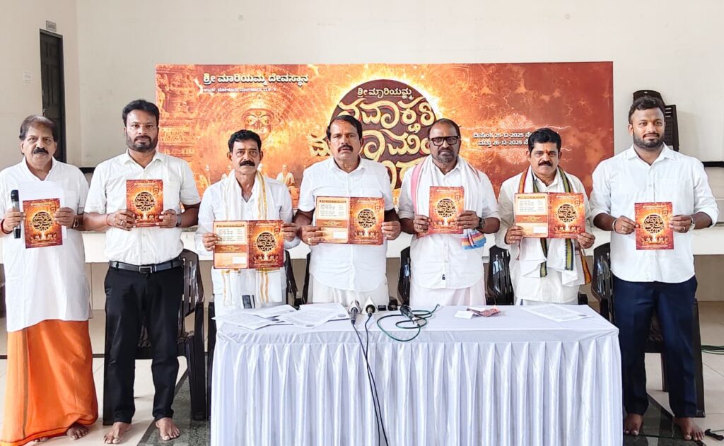 ಮಂಗಳೂರು : ಉರ್ವ ಶ್ರೀ ಮಾರಿಯಮ್ಮ ದೇವಸ್ಥಾನದಲ್ಲಿ ಡಿಸೆಂಬರ್ 25 ರಿಂದ 26 ರ ವರೆಗೆ ನವಾಕ್ಷರಿ ಮಹಾಮಂತ್ರ ಯಾಗ ನಡೆಯಲಿದೆ ಎಂದು ಪತ್ರಿಕಾಗೋಷ್ಠಿಯಲ್ಲಿ ತಿಳಿಸಿದ್ದಾರೆ.