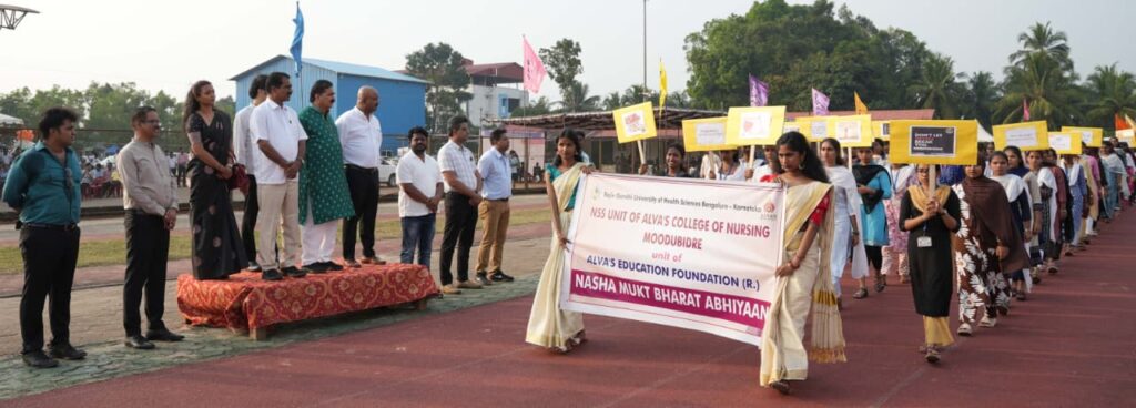 ಉಪನ್ಯಾಸಕ ರಾಜೇಶ್ ಡಿಸೋಜ ನಿರೂಪಿಸಿದರು.ರಾಷ್ಟ್ರ ನಷಾ ಮುಕ್ತ ಭಾರತ ಅಭಿಯಾನಕ್ಕೆ ರಾಜೀವ್ ಗಾಂಧಿ ಆರೋಗ್ಯ ವಿಜ್ಞಾನಗಳ ವಿಶ್ವವಿದ್ಯಾಲಯ ಸಕ್ರಿಯ ಬೆಂಬಲ ನೀಡುತ್ತಿದೆ. ಈ ಹಿನ್ನಲೆಯಲ್ಲಿ ಈ ಕ್ರೀಡಾಕೂಟದ ಪಥಸಂಚಲನದಲ್ಲಿ ಆಳ್ವಾಸ್ ನರ್ಸಿಂಗ್ ಕಾಲೇಜಿನ ರಾಷ್ಟ್ರೀಯ ಸೇವಾ ಯೋಜನೆಯ ವಿದ್ಯಾರ್ಥಿಗಳು ವಿಶೇಷ ಪ್ಲಕಾರ್ಡ್ಗಳು ಮತ್ತು ಬ್ಯಾನರ್ಗಳು ಹಿಡಿದು ನಷಾ ಮುಕ್ತ ಭಾರತ ಸಂದೇಶವನ್ನು ಕ್ರೀಡಾಂಗಣದಲ್ಲಿ ಉಪಸ್ಥಿತರಿದ್ದ ಸಾವಿರಾರು ವಿದ್ಯಾರ್ಥಿಗಳಿಗೆ ತಲುಪಿಸಿದರು.