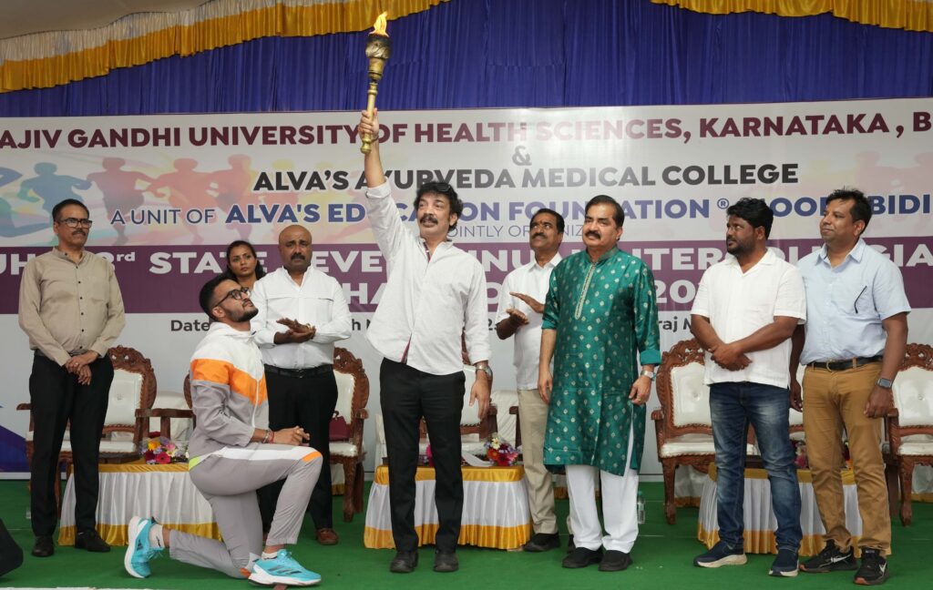 ಮೂಡುಬಿದಿರೆ: ಆಳ್ವಾಸ್ ಶಿಕ್ಷಣ ಪ್ರತಿಷ್ಠಾನದ ಆಳ್ವಾಸ್ ಆಯುರ್ವೇದ ವೈದ್ಯಕೀಯ ಕಾಲೇಜಿನ ಆತಿಥ್ಯದಲ್ಲಿ ಮೂರು ದಿನಗಳ ರಾಜೀವ್ ಗಾಂಧಿ ಆರೋಗ್ಯ ವಿಜ್ಞಾನಗಳ ವಿಶ್ವವಿದ್ಯಾಲಯದ ರಾಜ್ಯ ಮಟ್ಟದ 23ನೇ ಅಂತರ ಕಾಲೇಜು ಪುರುಷ ಮತ್ತು ಮಹಿಳೆಯರ ವಾರ್ಷಿಕ ಅಥ್ಲೆಟಿಕ್ ಕ್ರೀಡಾಕೂಟ 2025-26 ಸ್ವರಾಜ್ ಮೈದಾನದಲ್ಲಿ ಉದ್ಘಾಟನೆಗೊಂಡಿತು.