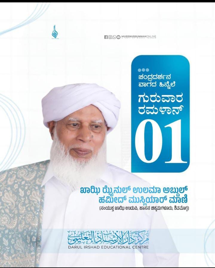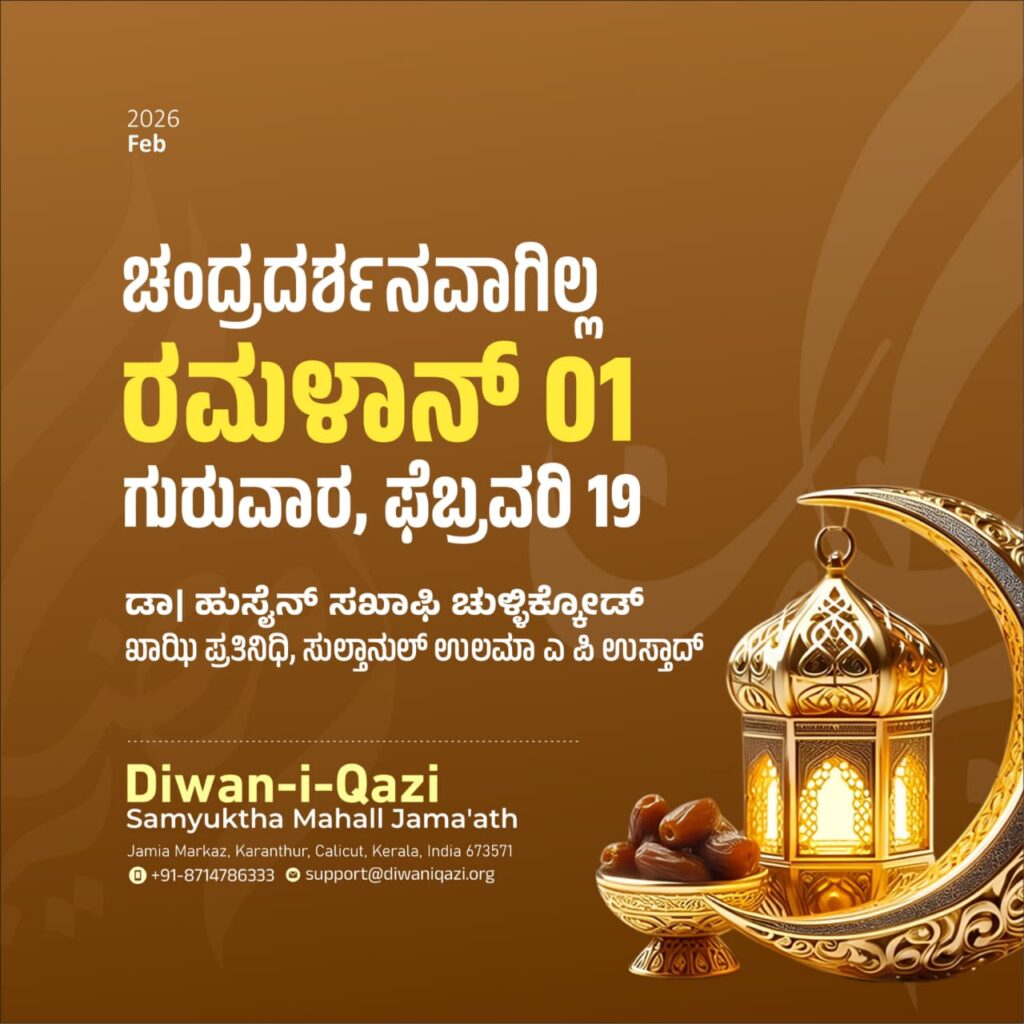 ಮಂಗಳೂರು: ಇಂದು ಚಂದ್ರದರ್ಶನವಾಗದ ಕಾರಣ ಗುರುವಾರದಿಂದ ರಮಝಾನ್ ಪ್ರಾರಂಭ ಎಂದು ಉಳ್ಳಾಲ ಖಾಝಿ ಸುಲ್ತಾನುಲ್ ಉಲಮಾ ಎ.ಪಿ.ಅಬೂಬಕ್ಕರ್ ಮುಸ್ಲಿಯಾರ್, ದ.ಕ ಜಿಲ್ಲಾ ಖಾಝಿ ಶೈಖುನಾ ತ್ವಾಖಾ ಉಸ್ತಾದ್ ಮತ್ತು ಉಡುಪಿ ಜಿಲ್ಲಾ ಖಾಝಿ ಶೈಖುನಾ ಮಾಣಿ ಉಸ್ತಾದ್ ನಿರ್ಧರಿಸಿದ್ದಾರೆ ಎಂದು ಖಾಝಿಗಳು ಪ್ರಕಟಣೆಯಲ್ಲಿ ತಿಳಿಸಿದ್ದಾರೆ.