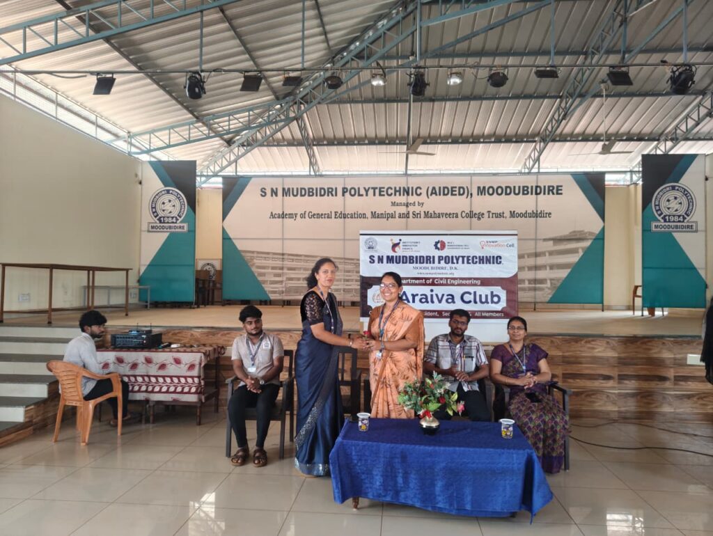 ಮೂಡಬಿದಿರೆ: ಇಲ್ಲಿನ ಎಸ್.ಎನ್. ಎಂ ಪಾಲಿಟೆಕ್ನಿಕ್ನ ಸಿವಿಲ್ ಇಂಜಿನಿಯರಿಂಗ್ ವಿಭಾಗದ ಆರೈವಾ ಸಿವಿಲ್ ಕ್ಲಬ್ ವತಿಯಿಂದ “ಡಿಜಿಟಲ್ ಯುಗದಲ್ಲಿ ಗಮನಶಕ್ತಿ, ಸ್ಮರಣಶಕ್ತಿ ಮತ್ತು ಯಶಸ್ಸು” ಎಂಬ ವಿಷಯದ ಮೇಲೆ ಪ್ರೇರಣಾದಾಯಕ ಉಪನ್ಯಾಸವನ್ನು ಎಸ್ಎನ್ಎಂಪಿ ಸಭಾಂಗಣದಲ್ಲಿ ಆಯೋಜಿಸಲಾಯಿತು.