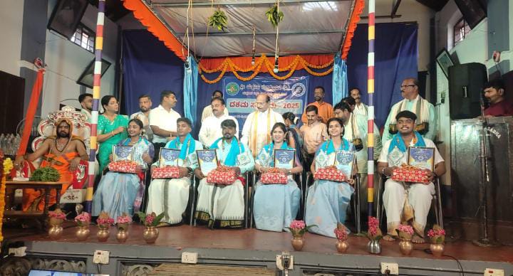 ಪ್ರಶಸ್ತಿ ಪ್ರದಾನ : ಕಟೀಲು ಮೇಳದ ಯಕ್ಷಗಾನ ಕಲಾವಿದ ಅಶೋಕ್ ಆಚಾರ್ಯ ವೇಣೂರು ಅವರಿಗೆ ರೂ ಹತ್ತು ಸಾವಿರ ನಗದಿನೊಂದಿಗೆ `ಶ್ರೀ ಯಕ್ಷನಿಧಿ ಪ್ರಶಸ್ತಿ -2025′ ನೀಡಿ ಸನ್ಮಾನಿಸಲಾಯಿತು. ವಿವಿಧ ಸಾಧಕರನ್ನು ಗೌರವಿಸಲಾಯಿತು. ಸಂಸ್ಥೆಯ ವಿದ್ಯಾರ್ಥಿಗಳಿಗೆ ಪ್ರತಿಭಾ ಪುರಸ್ಕಾರ ಹಾಗೂ ಶೈಕ್ಷಣಿಕ ಸಾಧಕರನ್ನು ಗೌರವಿಸಲಾಯಿತು. ಯಕ್ಷಗಾನ ತರಬೇತುದಾರ ಶಿವಕುಮಾರ್ ಅವರ ಮಾತೃಶ್ರೀ ಗಿರಿಜ ಅವರನ್ನು ಸನ್ಮಾನಿಸಲಾಯಿತು.