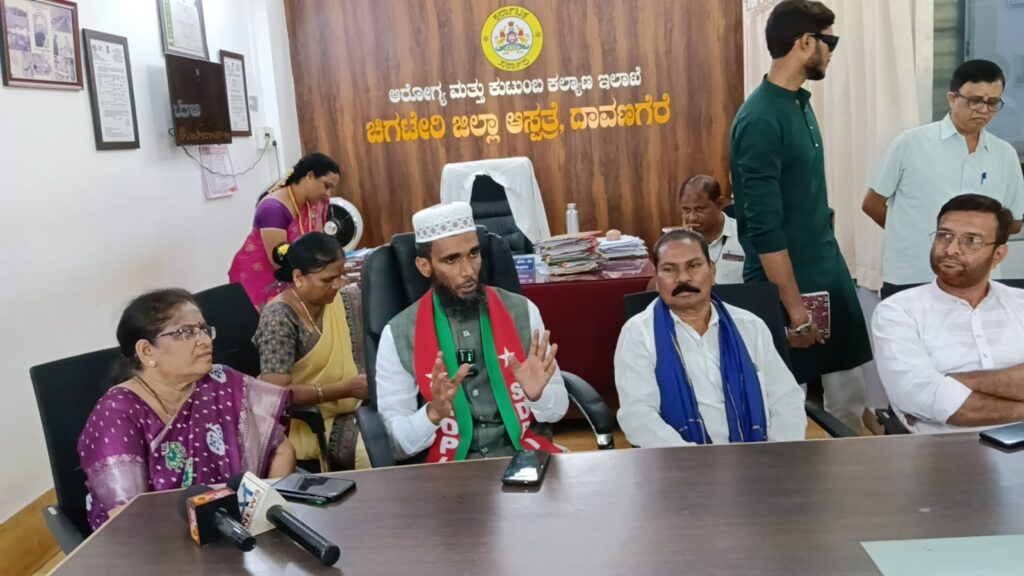 ದಾವಣಗೆರೆ, ಎಪ್ರಿಲ್ 17: ನಗರದ ಪ್ರಮುಖ ಆರೋಗ್ಯ ಕೇಂದ್ರವಾದ ಚಿಗಟೇರಿ ಜಿಲ್ಲಾ ಆಸ್ಪತ್ರೆಯಲ್ಲಿ ಮುಂದುವರಿದಿರುವ ಅವ್ಯವಸ್ಥೆಗಳು ಮತ್ತೆ ಬೆಳಕಿಗೆ ಬಂದಿವೆ. ಸೋಶಿಯಲ್ ಡೆಮಾಕ್ರೆಟಿಕ್ ಪಾರ್ಟಿ ಆಫ್ ಇಂಡಿಯಾ (SDPI) ರಾಜ್ಯ ಪ್ರಧಾನ ಕಾರ್ಯದರ್ಶಿ ಹಾಗೂ ದಾವಣಗೆರೆ ದಕ್ಷಿಣ ಕ್ಷೇತ್ರದ ಅಭ್ಯರ್ಥಿ ಅಫ್ಸರ್ ಕೊಡ್ಲಿಪೇಟೆ ಅವರು ಇಂದು ಆಸ್ಪತ್ರೆಗೆ ಭೇಟಿ ನೀಡಿ ಪರಿಶೀಲನೆ ನಡೆಸಿದರು. ಆಸ್ಪತ್ರೆಯಲ್ಲಿನ ಮೂಲಸೌಕರ್ಯಗಳ ಕೊರತೆ, ರೋಗಿಗಳಿಗೆ ಸರಿಯಾದ ಸೇವೆಗಳ ಅಭಾವ ಸೇರಿದಂತೆ ಹಲವು ಸಮಸ್ಯೆಗಳ ಬಗ್ಗೆ ಅವರು ತೀವ್ರ ಅಸಮಾಧಾನ ವ್ಯಕ್ತಪಡಿಸಿದರು.