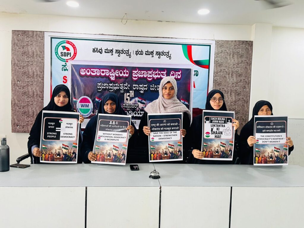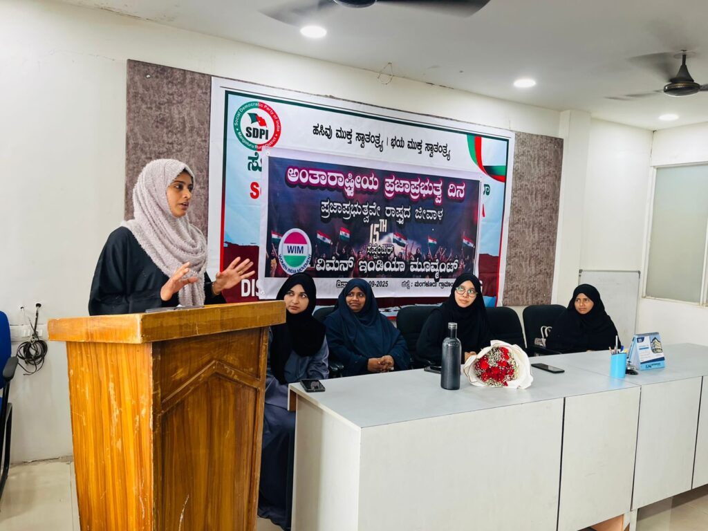 ಬಿ.ಸಿ.ರೋಡ್ (ಸೆಪ್ಟೆಂಬರ್ 15, 2025): ವಿಮೆನ್ ಇಂಡಿಯಾ ಮೂವ್ಮೆಂಟ್ – ಬಂಟ್ವಾಳ ವಿಧಾನಸಭಾ ಕ್ಷೇತ್ರ ಸಮಿತಿ ವತಿಯಿಂದ “ವಿಶ್ವ ಪ್ರಜಾಪ್ರಭುತ್ವ ದಿನ”ದ ಅಂಗವಾಗಿ ಇಂದು ಬಿ.ಸಿ.ರೋಡ್ ಕೈಕಂಬದಲ್ಲಿರುವ ಪಕ್ಷದ ಕಛೇರಿಯಲ್ಲಿ ಭವ್ಯವಾದ ಸೆಮಿನಾರ್ ಕಾರ್ಯಕ್ರಮ ನಡೆಯಿತು.